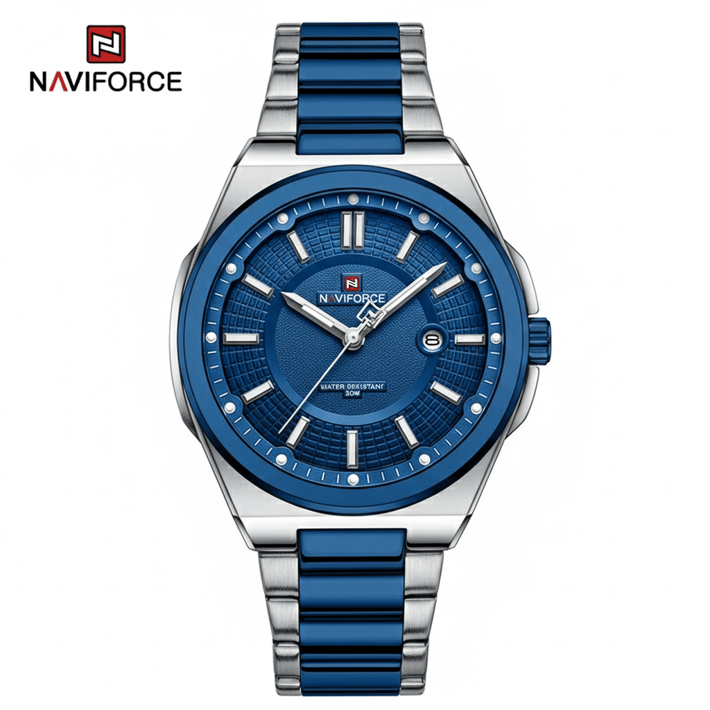 Naviforce 9212 is a stylish and durable men’s wristwatch featuring a 43mm stainless steel case, hardened mineral glass, luminous hands, and a precise quartz movement. With its elegant design and date display, it’s perfect for both formal and everyday wear—offering premium looks at an affordable price—Naviforce 9212 Price in Bangladesh.